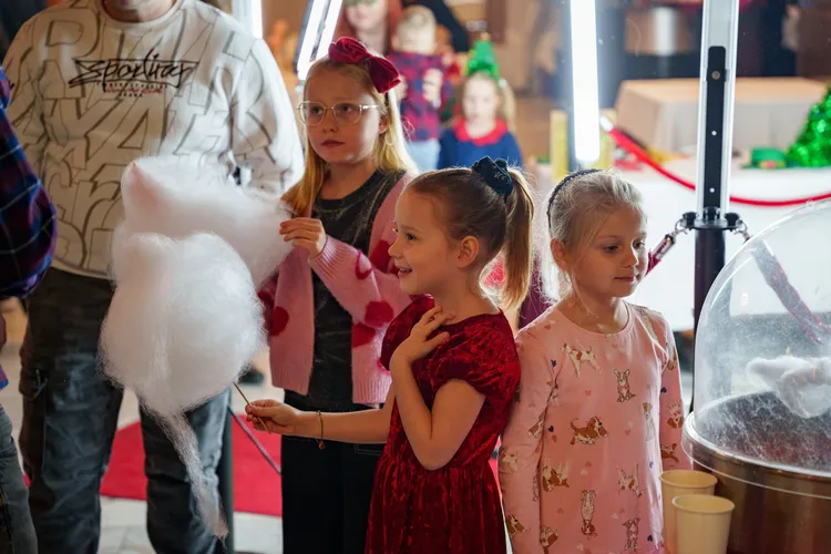 Na najmłodszych czekało wszystko, co w grudniu najlepsze: wspólne zabawy, kreatywne animacje, dekorowanie świątecznych pierników, spotkanie ze św. Mikołajem i workiem pełnym prezentów, a do tego wata cukrowa, fotobudka i kolorowe tatuaże. Uśmiechów było tyle, że spokojnie wystarczyłoby do oświetlenia niejednej choinki.